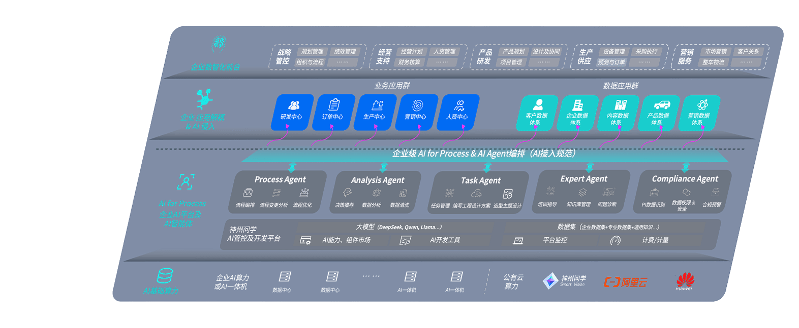端到端的一站式AI工作空间深度融合了从企业战略规划到日常经营的全流程业务板块,,,定向解决车企内部领域多、、、部门多、、、链条长、、、、场景碎片化等难题,,支持车企快速构建以AI为核心的生产力写作体系,,,,实现任务执行与AI能力的无缝集成与交互